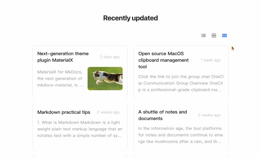 - Display recently updated documents in descending order by update time, list items are dynamically updated